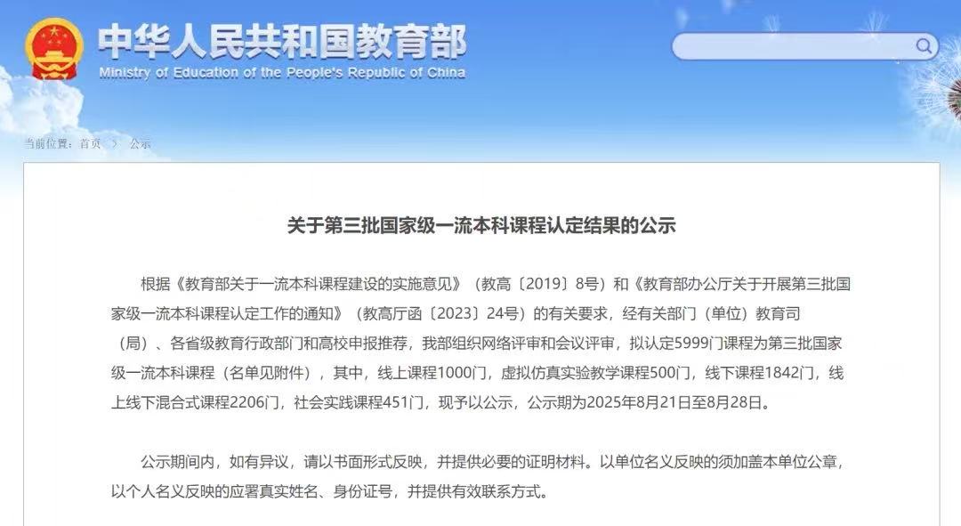 近日,教育部公示了第三批国家级一流本科课程认定结果。数字艺术与传媒学院两门线上课程成功获批国家级一流本科课程。这是数字艺术与传媒学院在持续推进课程建设过程中取得的又一重要成果。